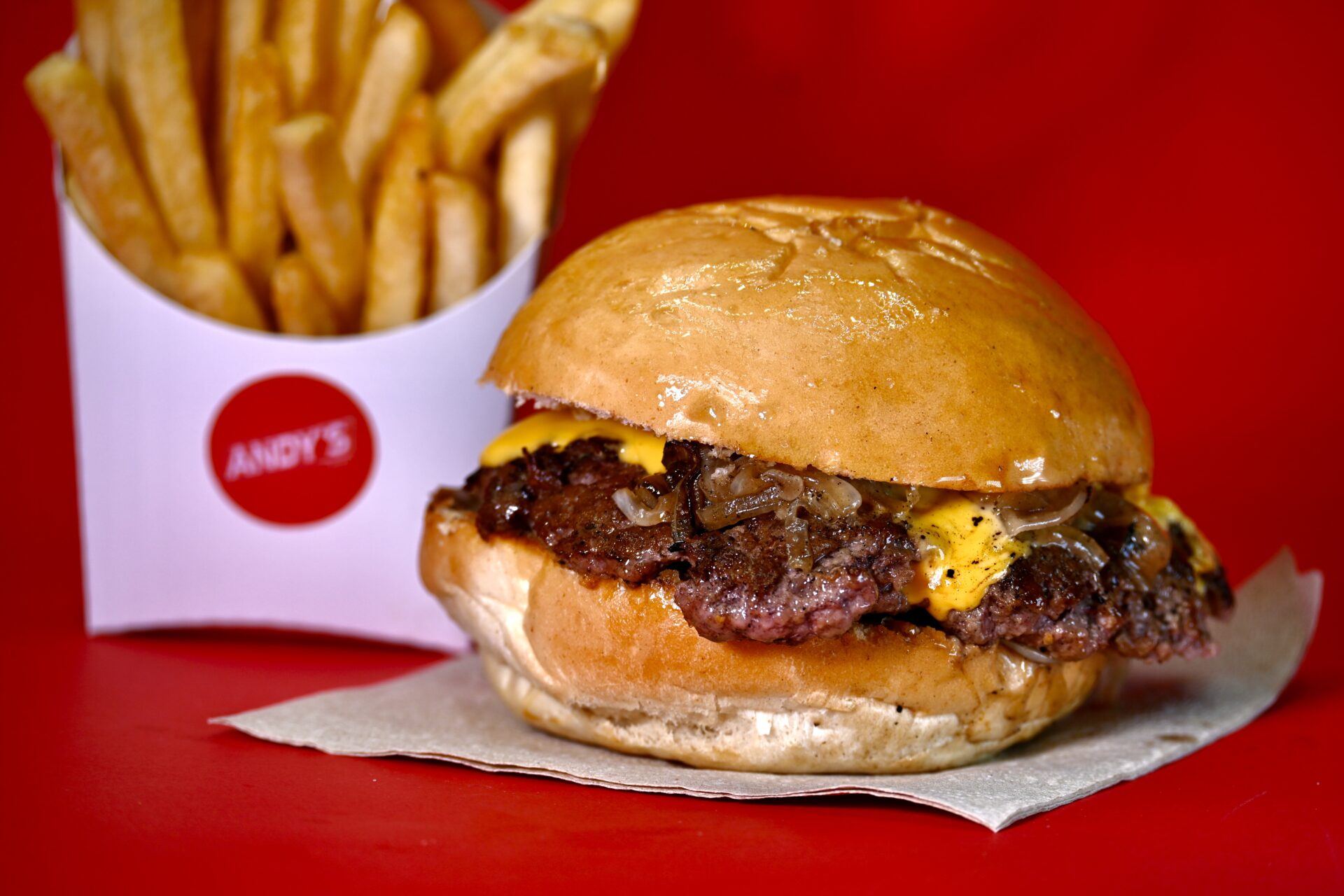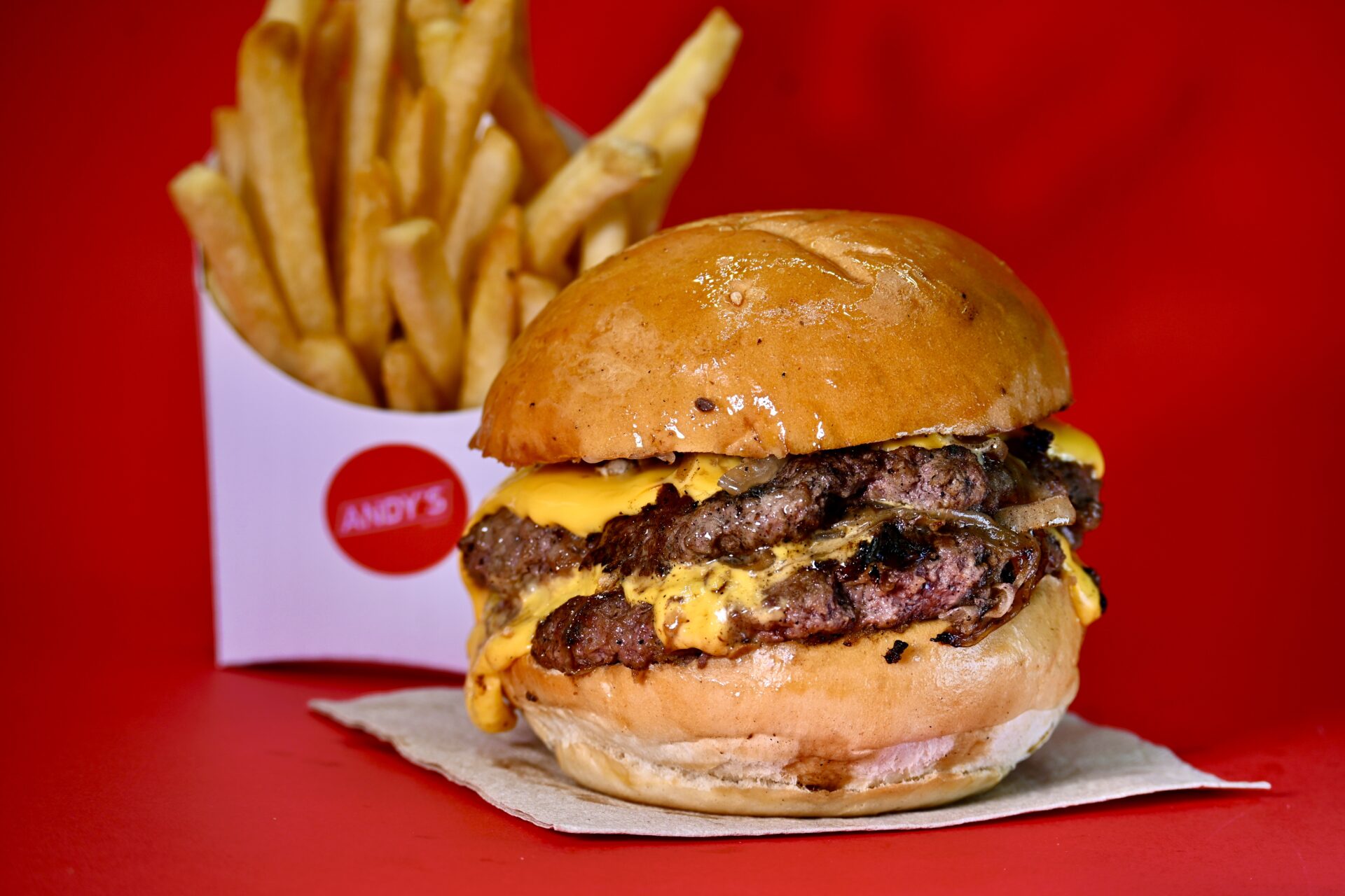Dos carnes de 3 onzas, cebollas bien cocidas, 2 quesos americano. Incluye papas fritas y bebida 12 onzas.